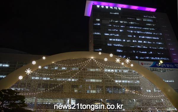 ▲ 시청사 크리스마스 스윙 점등식강기정 광주시장은 “경기침체 등 어려운 시기를 보내고 있는 시민들에게 작지만 추억이 될 수 있는 선물을 준비했다”며 “시청을 방문하는 시민들이 ‘멋진 꿀잼 광주’를 만끽하길 바란다. 앞으로도 시민의 소소한 행복을 위해 작은 선물들을 선사하겠다”고 말했다.