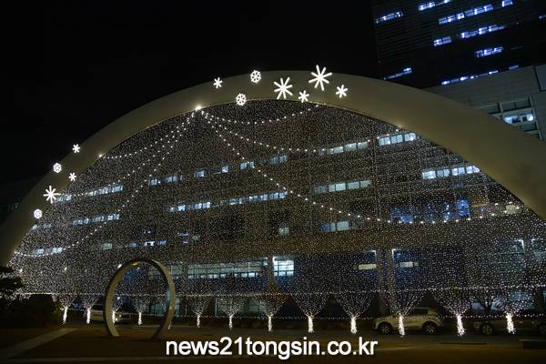 이번에 새로 설치한 발광다이오드(LED) 은하수조명은 한해를 마무리하는 시점에 시청을 방문하는 시민들이 크리스마스의 설렘을 안고 희망찬 새해를 기원할 수 있도록 기획됐다.
