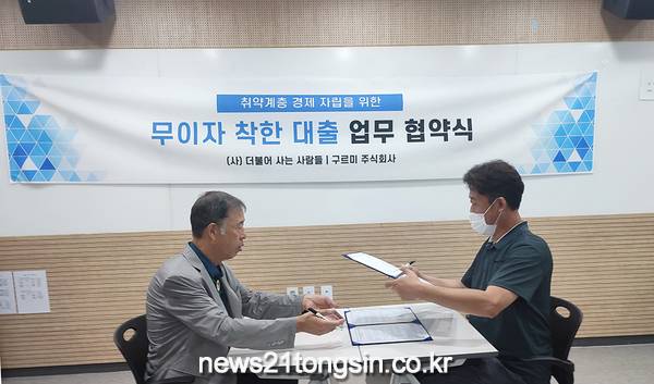 구르미(대표 임상묵)와 더불어 사는 사람들(대표 이창호)이 ‘구로구 취약·빈곤계층’을 위한 무이자 착한 대출 협약을 체결했다.