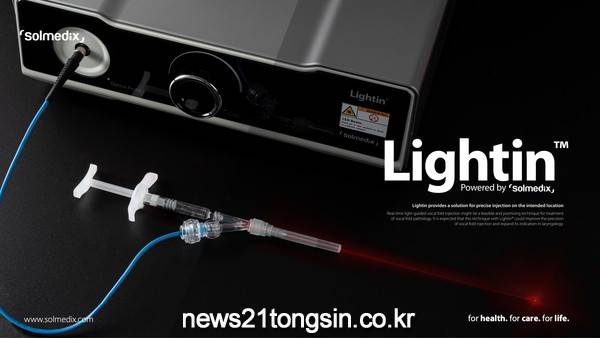 ‘라이트인’은 성대질환 환자에 대한 경피적 성대 주입술 시 사용되는 의료기기로, 주사침에 광(Light) 가이드 기술을 적용해 시술자가 주삿바늘의 위치를 직관적으로 실시간 확인할 수 있도록 개발한 제품이다. 솔메딕스는 글로벌 성대질환 분야 최초로 광 가이드 기술의 상용화에 성공하며 이번 혁신의료기기 지정이라는 성과를 얻었다.