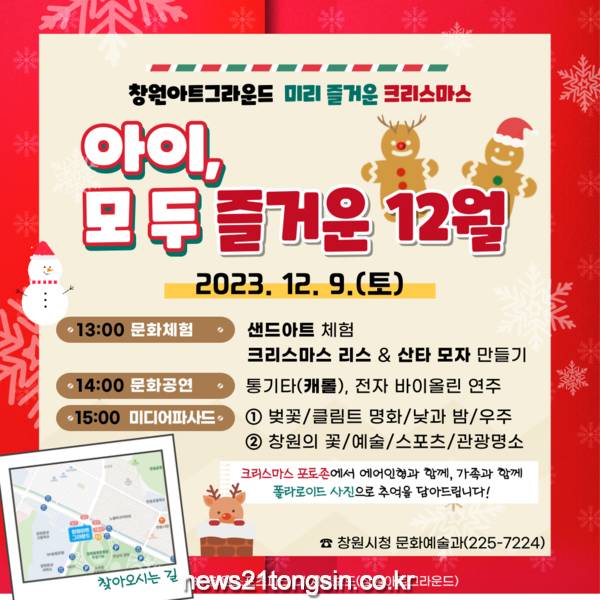 창원특례시(시장 홍남표)는 12월 9일 창원아트그라운드에서 「아이, 모두 즐거운 12월」 문화행사를 진행한다고 밝혔다.