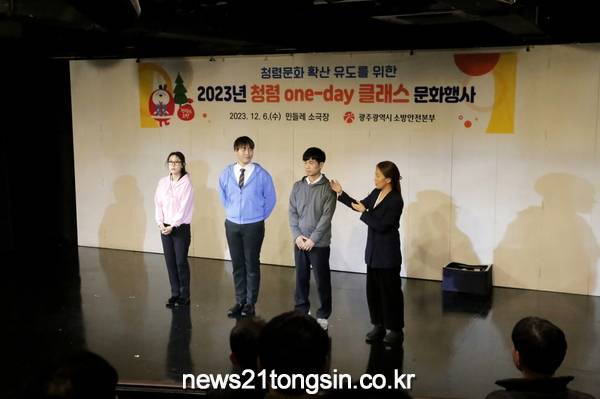 [뉴스21통신/장병기 기자] 광주광역시소방안전본부는 일상 속 청렴문화 확산 유도를 위해 6일 동구 동명동 민들레소극장에서 팀장급 50여 명을 대상으로 청렴 일일강좌(원데이 클래스) 문화행사를 진행했다.