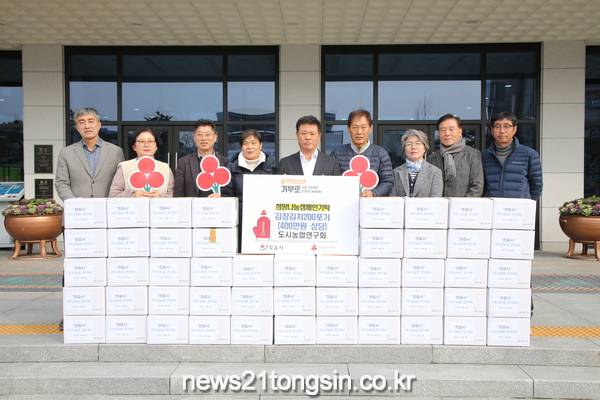 정읍시 도시농업연구회(회장 김영구)는 회원들이 텃밭에서 키운 배추와 무 등 김장 채소를 활용해 담근 김장김치 200포기를 6일 기탁했다.