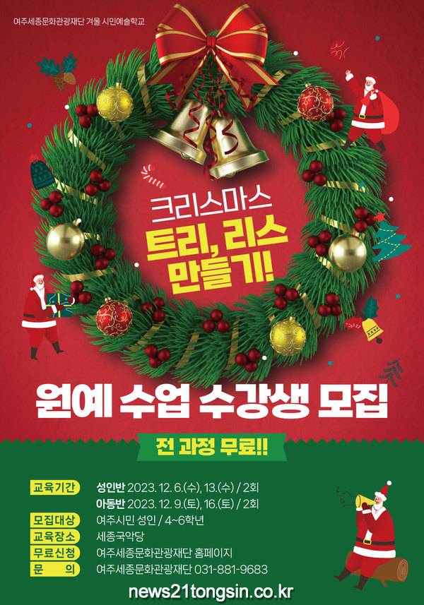 여주세종문화관광재단이 겨울 시민예술학교의 일환으로 세종국악당에서 ‘크리스마스 특집 원예 수업’을 진행한다.