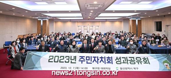 (뉴스21통신/권혁진기자) = 울산 북구는 7일 구청 대회의실에서 주민자치회 성과공유회를 열고, 2023년 8개 동에서 추진한 자치실행사업과 주민자치회 성과사례를 공유했다.