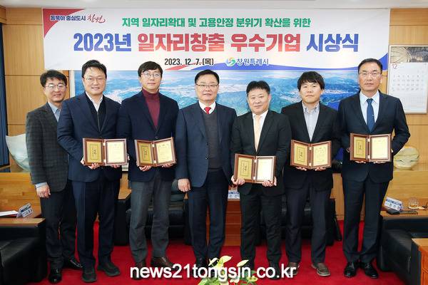 창원특례시(시장 홍남표)는 7일 시청 접견실에서 어려운 경제 여건에도 불구하고 일자리 창출과 고용안정에 기여하고 지역의 일자리 창출 분위기 확산을 위해 노력한 관내 5개 기업체를 ‘2023년 일자리 창출 우수기업’으로 선정하고, 표창패를 수여했다고 밝혔다.