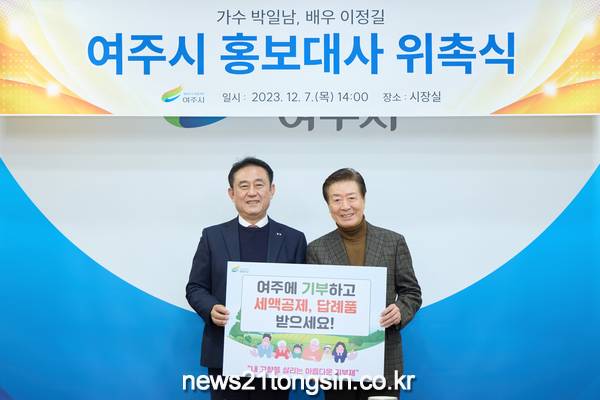 여주시는 7일 시청 시장실에서 이충우 여주시장과 관련 국‧과장이 참석한 가운데 가수 박일남과 배우 이정길을 여주시의 새로운 홍보대사로 위촉했다고 밝혔다.
