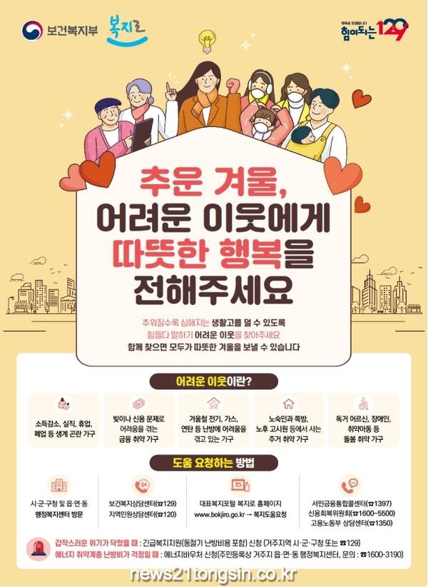 군은 고물가·고금리 상황에 실업과 한파 등으로 고통받는 이웃이 없도록 사회보장시스템의 빅데이터와 지역 인적 안전망을 활용해 무연고 홀몸 어르신, 거리 노숙인, 쪽방 주민, 가족 돌봄 아동, 난방·건강 위기가구, 생계·주거 위기가구, 금융 취약계층, 일자리·돌봄 가구 등 위기가구를 적극 발굴할 방침이다.