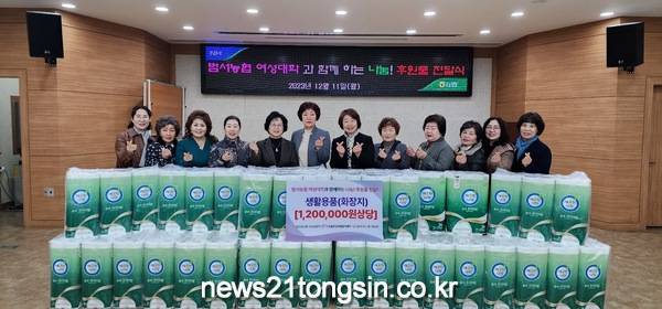 (뉴스21통신/우정석기자) = 범서농협 여성대학 총동창회(회장 허춘선)가 11일 범서농협 하나로마트에서 김숙희 범서농협 조합장 등이 참석한 가운데 지역 취약계층을 위해 120만원 상당의 생활용품을 울주푸드뱅크마켓에 전달했다.