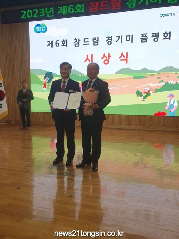 ▲ 사진=김포시청김포시 하성면 이경재 농가가 지난 8일 경기도농업기술원에서 개최된 경기도 참드림 경기미 품평회에서 최우수상을 수상했다.