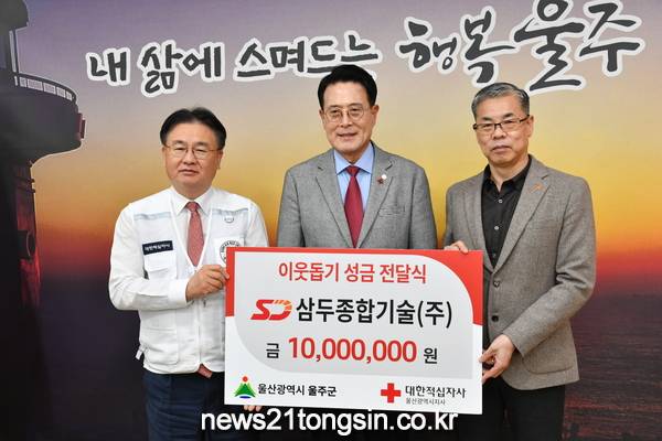 (뉴스21통신/우정석기자) = 삼두종합기술(대표이사 최영수)이 12일 울주군에 적십자 특별회비 1천만원을 기탁했다.