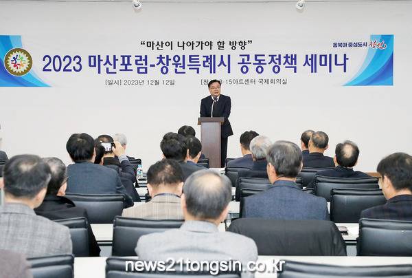홍남표 창원특례시장은 12일, 마산 3.15아트센터 국제회의장에서 열린 ‘2023 마산포럼-창원특례시 공동정책 세미나’에 참석해 마산 발전을 위한 여러 복안을 제시했다.