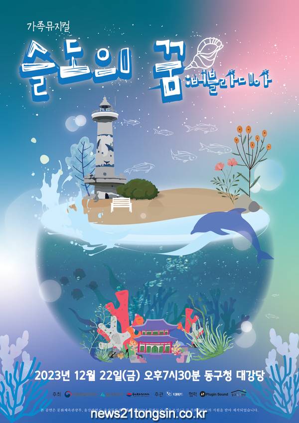 (뉴스21통신/임정훈기자) = 울산에 소재한 전문예술단체 플러그인 사운드와 동구 문화예술단체 더 아트는 오는 12월 22일(금) 19시30분 동구청 대강당에서 [슬도의 꿈 : 버블라디아] 가족 뮤지컬 공연을 개최한다고 밝혔다.