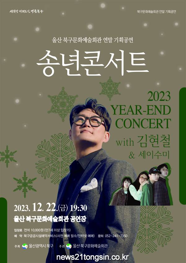 울산 북구문화예술회관은 오는 22일 오후 7시 30분 공연장에서 '2023 송년음악회 with 김현철, 세이수미'를 마련한다.