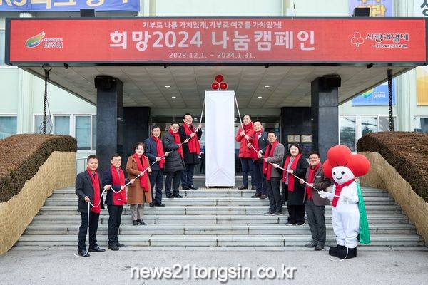 여주시(시장 이충우)와 경기사회복지공동모금회(회장 권인욱)는 지난 13일 여주시청 에서 연말연시 나눔문화 활성화를 위한 「희망2024 나눔캠페인」의 시작을 알리는 여주시 사랑의 온도탑 제막식을 개최하였다.
