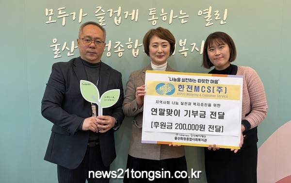 이날 한전MCS(주) 동울산지점에서 연말 맞이 후원금 20만원을 함께 전달하였으며, 전달받은 후원금은 지역주민을 위한 복지사업에 사용될 예정이다.
