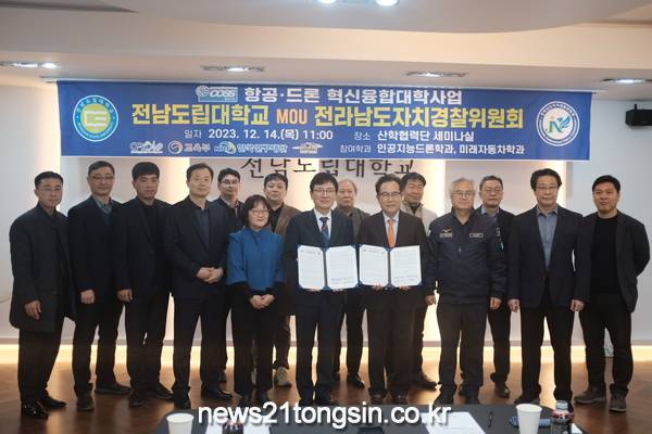 전라남도자치경찰위원회는 전남도립대와 드론 전문인력 양성과 자치경찰 연구·학술교류를 위해 지난 14일 업무협약을 했다고 밝혔다.
