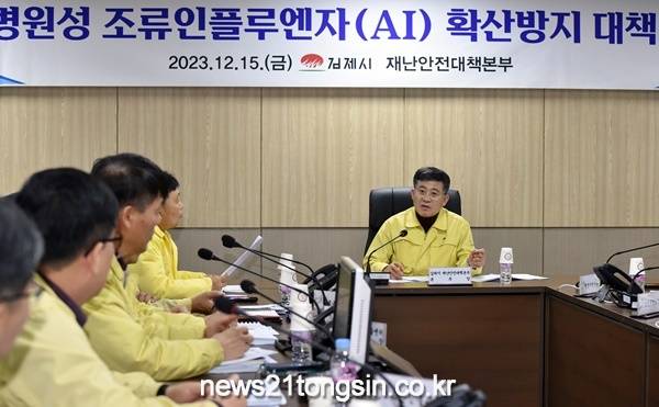 15일, 정성주 재난안전대책본부장은 간부공무원과 10개 협업부서장과 함께 긴급 대책회의를 갖고 고병원성 AI 방역 조치 상황과 분야별 대응 방안을 집중 점검했다.