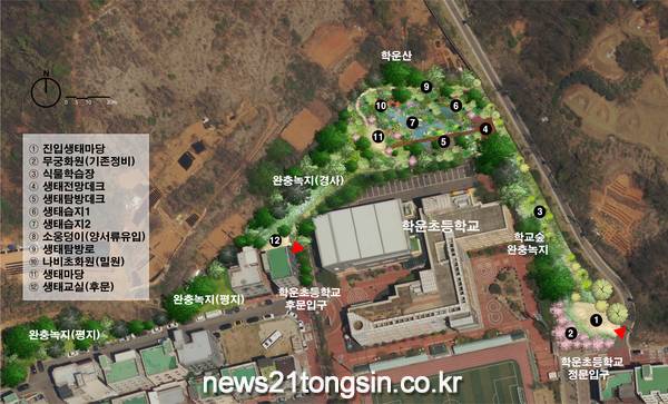 학운리 완충녹지는 학운산 주연부 불법경작 등으로 훼손이 심했는데 국비 4억3천만원을 투입해 훼손된 숲을 복원하고, 용출수로 인해 상시 습한 지점을 생태습지로 조성하여 ▲생태탐방로 ▲식물학습장 ▲생태전망대 ▲관찰데크 등을 2024년 10월말까지 조성한다는 계획이다.