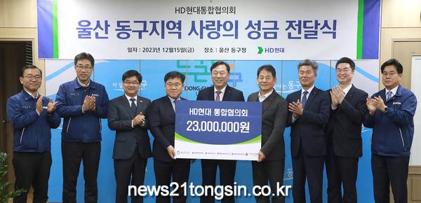 현대중공업 사내협력사협의회는 12월 15일 오후 3시30분 동구청을 방문해 이웃돕기 성금 2,300만원을 기탁했다.