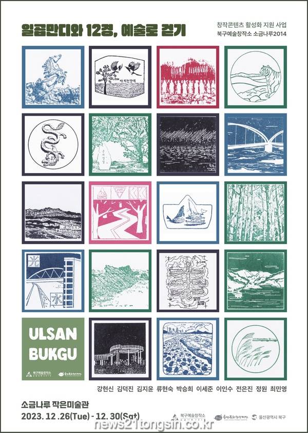 (뉴스21통신/권혁진기자) = 울산북구예술창작소 소금나루2014를 거쳐 간 입주작가 10명이 북구 명소인 '일곱만디'와 '북구 12경'을 답사하고, 각 장소를 상징하는 스탬프 이미지를 제작해 눈길을 끈다.