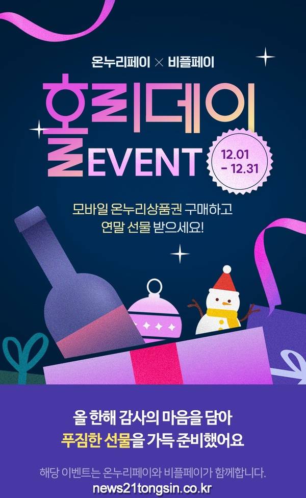 Expense 비용관리 Total 솔루션 비즈플레이(대표 김홍기)가 연말을 맞아 모바일 온누리상품권 구매 고객 대상 ‘홀리데이 이벤트’를 진행한다고 19일 밝혔다.