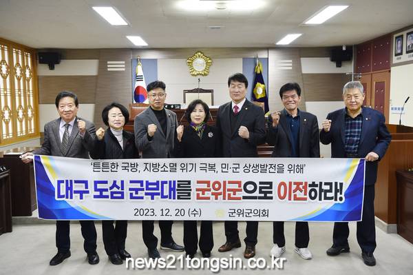 군부대유치특별위원회(위원장 김영숙 의원, 간사 장철식 의원)는 건의문에서 “지방소멸 위기 해소와 지역발전 민·군 상생을 위하여 통합 신공항 이전 건설과 광역 교통망 구축, 군위군의 대구광역시 편입 등으로 부대 이전 대상지로의 최적의 조건을 갖추고, 지역 주민의 수용성이 가장 높은 군위군 지역으로 대구시 도심 군부대를 이전하라”고 촉구했다.
