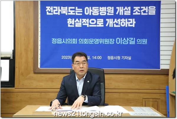 정읍시의회 이상길 의원(의회운영위원장)은 지난 19일 정읍시청 기자실에서 기자회견을 열고 정읍시의 의료 환경 개선을 위한 대책 마련을 촉구했다.