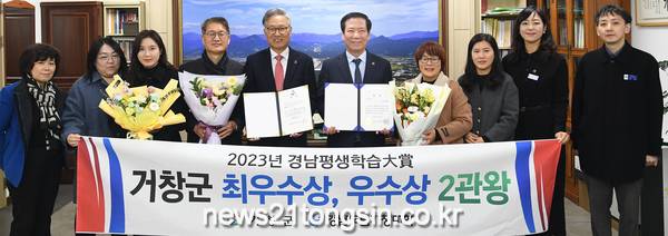 거창군은 지난 19일 경남인재평생교육진흥원(이하 진흥원)에서 주관한 ‘2023 제3회 경남평생학습대상(大賞) 우수사례 경진대회’에서 공로부문에 거창군이 ‘최우수상’, 경남도립 거창대학 평생교육원이 ‘우수상’을 수상했다고 20일 밝혔다.