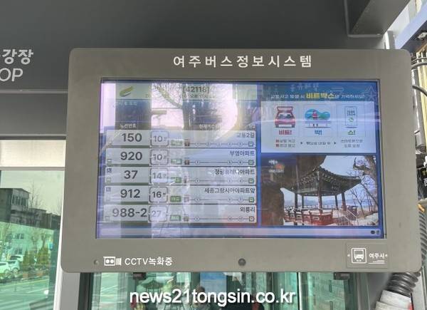 여주시 교통행정과 관계자는 “대중교통 이용 활성화를 위해 버스정보안내기를 확대 설치하고 노후된 기기는 연차적으로 교체할 계획”이라며 “재정부담 감소를 위해 국토교통부 공모사업을 통한 국비 확보에도 최선을 다하겠다.”고 말했다.