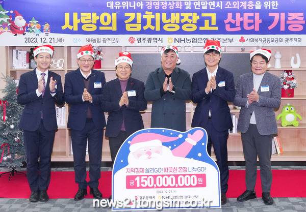 이날 NH농협은행 광주본부에서 열린 ‘사랑의 김치냉장고 산타 기증식’에는 강기정 광주광역시장을 비롯해 박내춘 농협은행 광주본부장, 농협중앙회·지역농협조합장 등 농협관계자와 사회복지공동모금회, 위니아 협력사 대표 등이 참석했다.