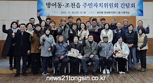 (뉴스21통신/임정훈기자) = 울산 동구 방어동 주민자치위원회(위원장 정동환)는 12월 20일 오후 3시 30분 선진지 견학차 울산을 방문한 제주시 조천읍장과 조천읍 주민자치위원회(위원장 천창석)와 함께 방어동 행정복지센터 3층 다목적실에서 방어동과 조천읍 주민자치위원회 간의 간담회 및 화합 행사를 진행하였다.