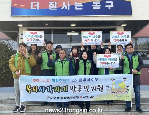(뉴스21통신/임정훈기자) = 울산 동구 대송동 지역사회보장협의체(위원장 이진연)는 12월 20일 대송동 농산물시장 일원에서 동절기 집중 복지사각지대 발굴 캠페인을 실시했다.