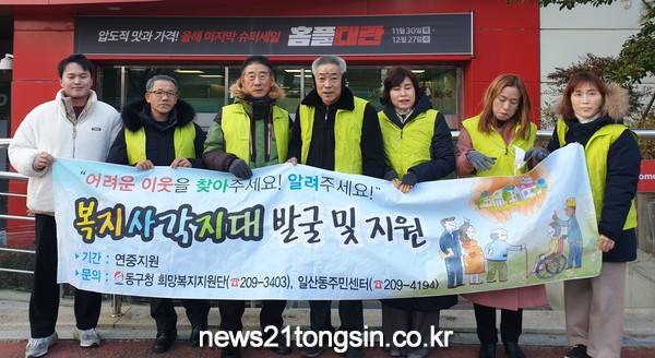 (뉴스21통신/임정훈기자) = 울산 동구 일산동 지역사회보장협의체(민간위원장 한용출)는 12월 20일 오후 2시30분 지역 주민들을 대상으로 복지사각지대 발굴 캠페인을 추진했다.