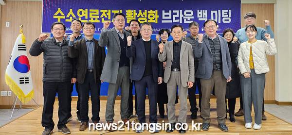 경상북도는 21일 동부청사 대회의실에서 수소연료전지 산업생태계 활성화를 위해 포항TP와 ㈜투엔, ㈜햅스, ㈜에너지앤퓨얼 등 12개 참여기관이 모여 브라운백 미팅을 가졌다.