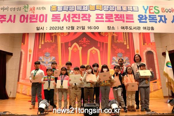 여주시(시장 이충우) 평생교육과 시립도서관은 지난 12월 21일 여주도서관 여강홀에서 「여주시 어린이 독서진작 프로젝트」 완독자에게 시상하는 자리를 마련하고 완독 인증서와 메달, 도서상품권을 수여했다.