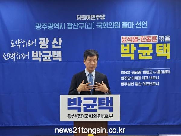 [뉴스21통신/장병기 기자] 박균택 광주 광산 갑 국회의원 예비후보(법무법인 광산 대표변호사)가 26일 선거관리위원회 등록 경력을 ‘더불어민주당 이재명대표 법률특보’에서 ‘더불어민주당 당대표 법률특보’로 변경했다.