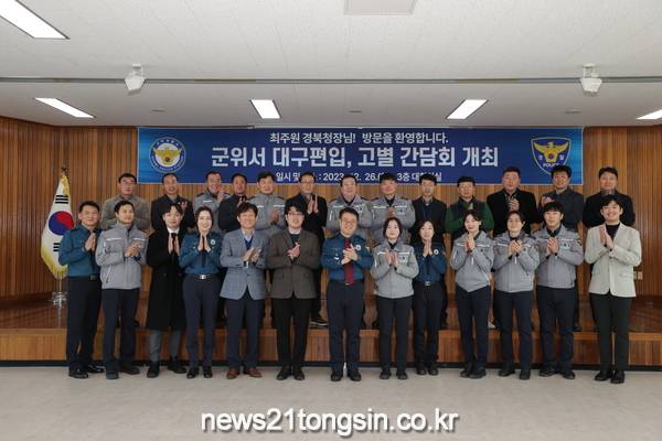 이날 간담회는 군위署의 대구청 편입을 앞두고 최주원 경북청장이 직접 군위署에 방문하여 대구청 편입, 경북청 잔류 직원들의 소회 청취 및 격려를 위해 진행되었다.