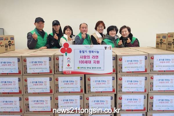 (뉴스21통신/임정훈기자) = 울산 동구 전하2동 새마을협의회(회장 김기명) 및 새마을부녀회(회장 김옥련)는 12월 26일 전하2동 행정복지센터를 방문하여 취약 계층에게 시가 300만원 상당의 라면 100상자를 기탁했다.