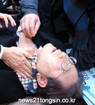 이 대표는 이날 오전 부산 가덕도 신공항 부지를 둘러본 후 기자들과 문답을 진행하던 중 신원이 확인되지 않은 남성으로부터 왼쪽 목 부위를 공격당해 피를 흘린 채 쓰러졌다.