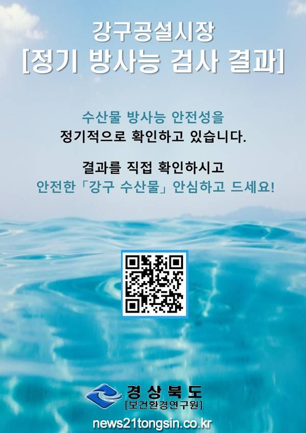 수산물 소비 위축이 우려됨에 따라 경북 동해안 거점 수산시장 상인연합회와 합동으로 시장 특산품 및 다소비 수산물 방사능 검사를 실시, 수산물 안전성 홍보를 위한 자료(성적서, QR코드)를 제공했다.