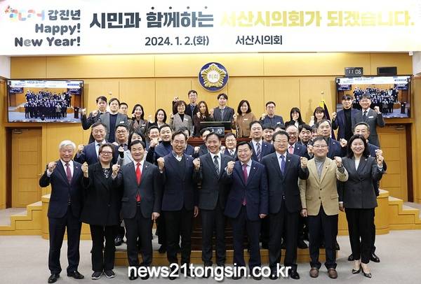 서산시의회(의장 김맹호)가 2일 서산시의회 본회의장에서 ‘2024년 서산 시의회 시무식’을 갖고 올해 본격적인 업무에 들어갔다.