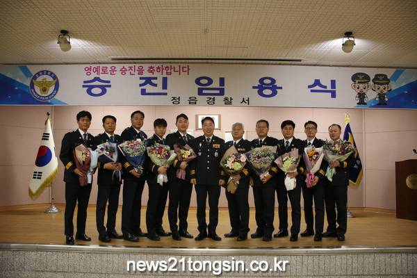 정읍경찰서(서장 김한곤)는 지난 29일 오전 10:00경 3층 대회의실에서 서장, 동료직원 등이 참석한 가운데 승진임용식을 개최했다.