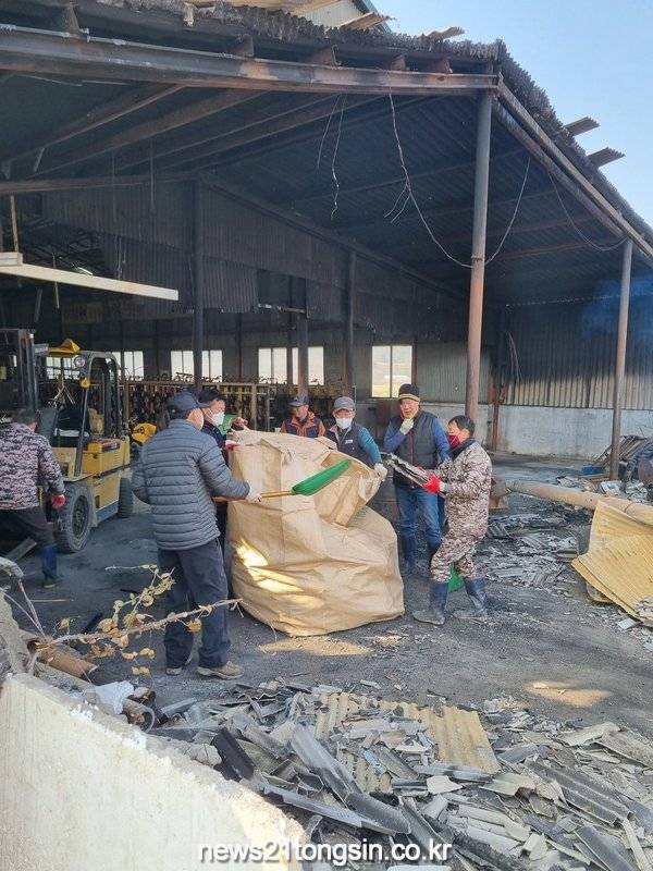 [뉴스21통신 박찬웅 기자] 지난 12월 29일, 최재용(前 도암면장)외 62년생 범띠 15명으로 구성된 친목 모임 ‘범 일레븐’에서 도암산업 화재 현장 정리를 위해 구슬땀을 흘렸다.