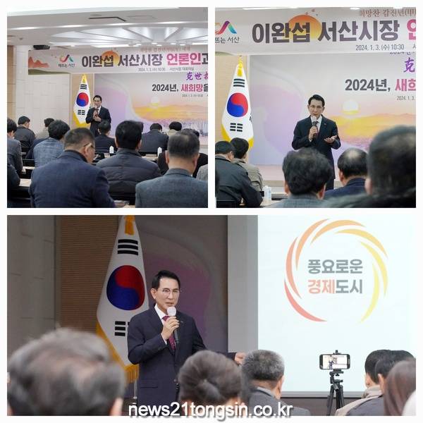 이완섭 서산시장이 3일 시청 대회의실에서 새해 언론인과의 대화를 열고 지난해의 성과, 올해 시정 운영 방향에 대해 밝혔다.