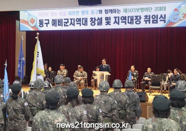 [뉴스21통신/장병기 기자] 광주 동구는 5일 구청 6층 대회의실에서 육군 제31보병사단 6753부대 2대대와 함께 예비군 임무 수행 능력과 통합방위 태세 향상을 위한 ‘동구 예비군지역대’ 창설식을 진행했다고 밝혔다.