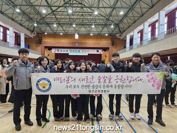 대구군위경찰서(서장 이성철)는 지난 8일 ‘건전한 졸업문화 정착을 위한 청소년 선도 합동 캠페인 활동’을 실시했다.