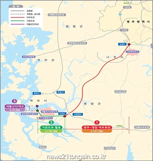 사업비는 광주~영암 초고속도로 2조 6천억 원, 대불산단대교 1천900억 원 등 총 2조 7천900억 원이 소요될 예정이다.