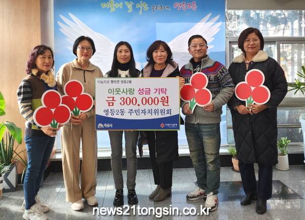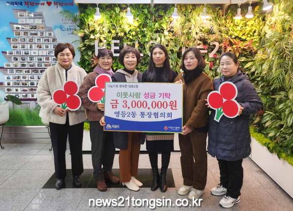 영등2동은 통장협의회(회장 김금례)를 비롯한 여러 지역 단체가 새해를 맞아 따뜻한 성금을 전달했다고 9일 밝혔다.