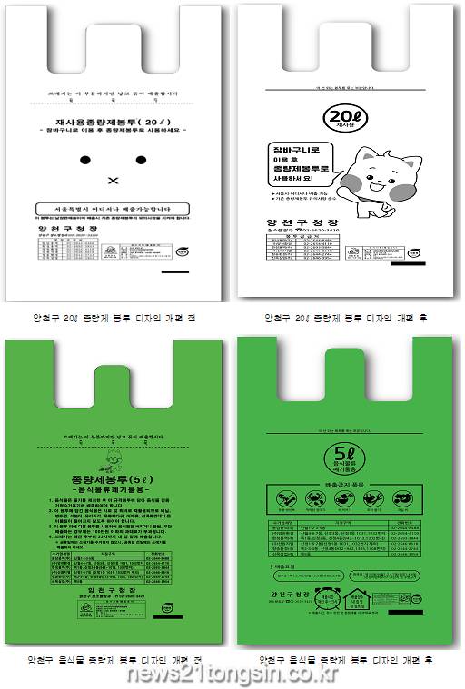 (▲사진=양천구, 종량제봉투 디자인 전면 개편 전과 후)